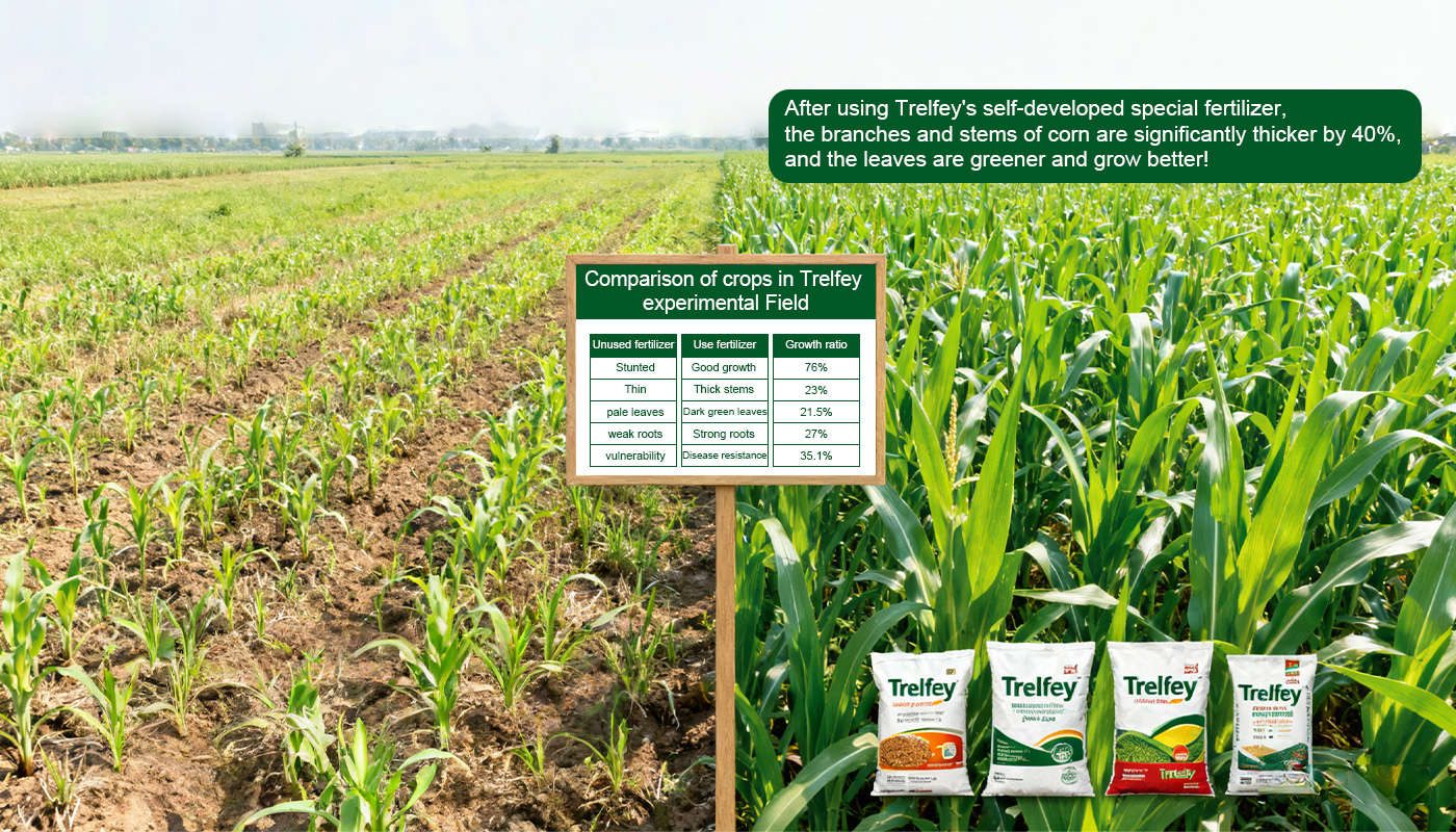 In many agricultural test fields around the world, crops using Trelfey fertilizer have performed amazingly.: