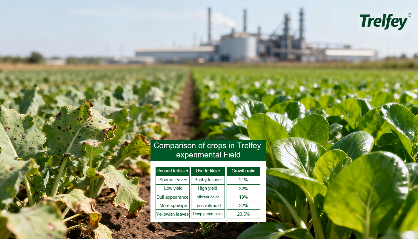 In the comparative vegetable experiments we conducted, the experimental fields using Trelfey fertilizer showed significant advantages: the vegetable plants increased by an average of 21% compared to the control group, the leaves were stout, thick green and shiny, and the soil test data showed that the organic matter content of the field using our fertilizer increased by 0.8%, and the microbial activity increased by 45%, which laid a good foundation for continuous high yield and high quality.